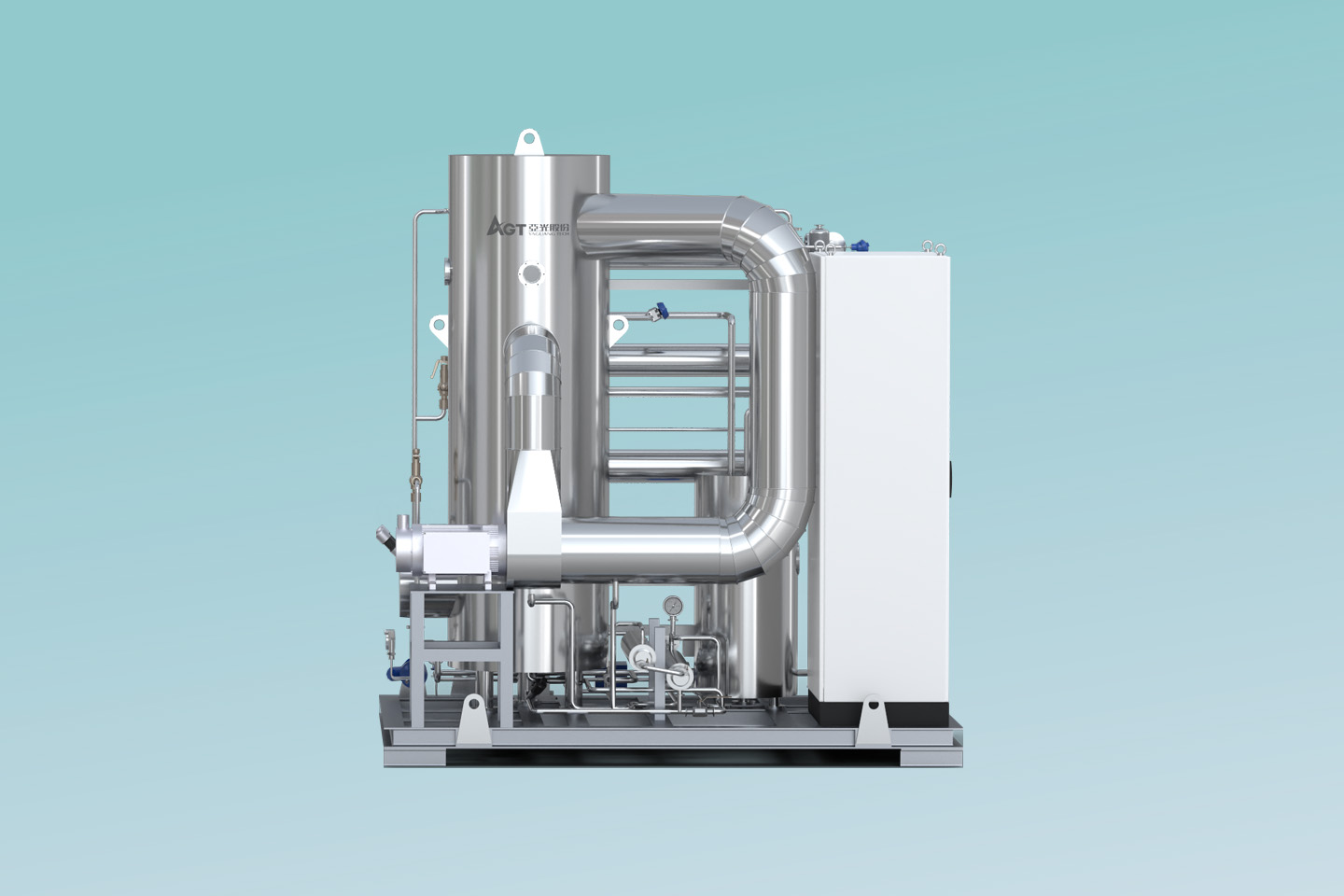 MVR熱泵精餾系統(tǒng)以高效旋轉(zhuǎn)精餾床為基礎(chǔ),利用離心力場(chǎng)代替重力場(chǎng),強(qiáng)化相與相之間的相對(duì)速度和相互接觸,通過(guò)強(qiáng)化傳質(zhì)傳熱來(lái)提高分離效率縮小設(shè)備體積。 通過(guò)在系統(tǒng)中引入適用于小流量、大壓比的螺桿式蒸汽壓縮機(jī),即可實(shí)現(xiàn)MVR循環(huán)熱泵精餾。